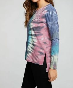 Outlet โค๏ธ Chaser Linen French Terry Raglan Half Zip Hoodie in Tie Dye for ๐ฉ women โ