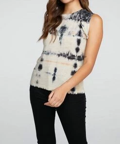 Top 10 😀 Chaser VINTAGE RIB CROPPED HENLEY 👚 SHIRTTAIL TANK in Eclipse Tie Dye for 👩 women 🔥