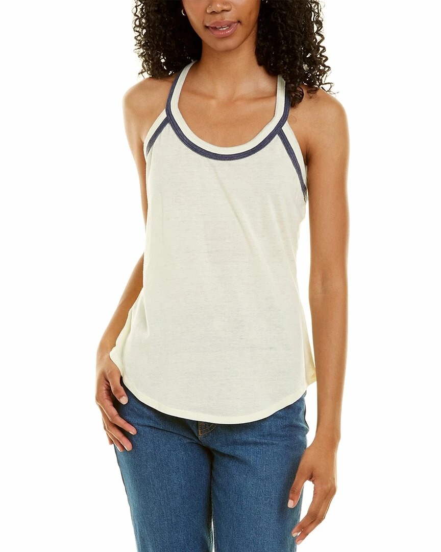 - Blocked T-Back Tank In Chick And Sailboat With Colorblocked Design, Shirttail Hem, And Racerback