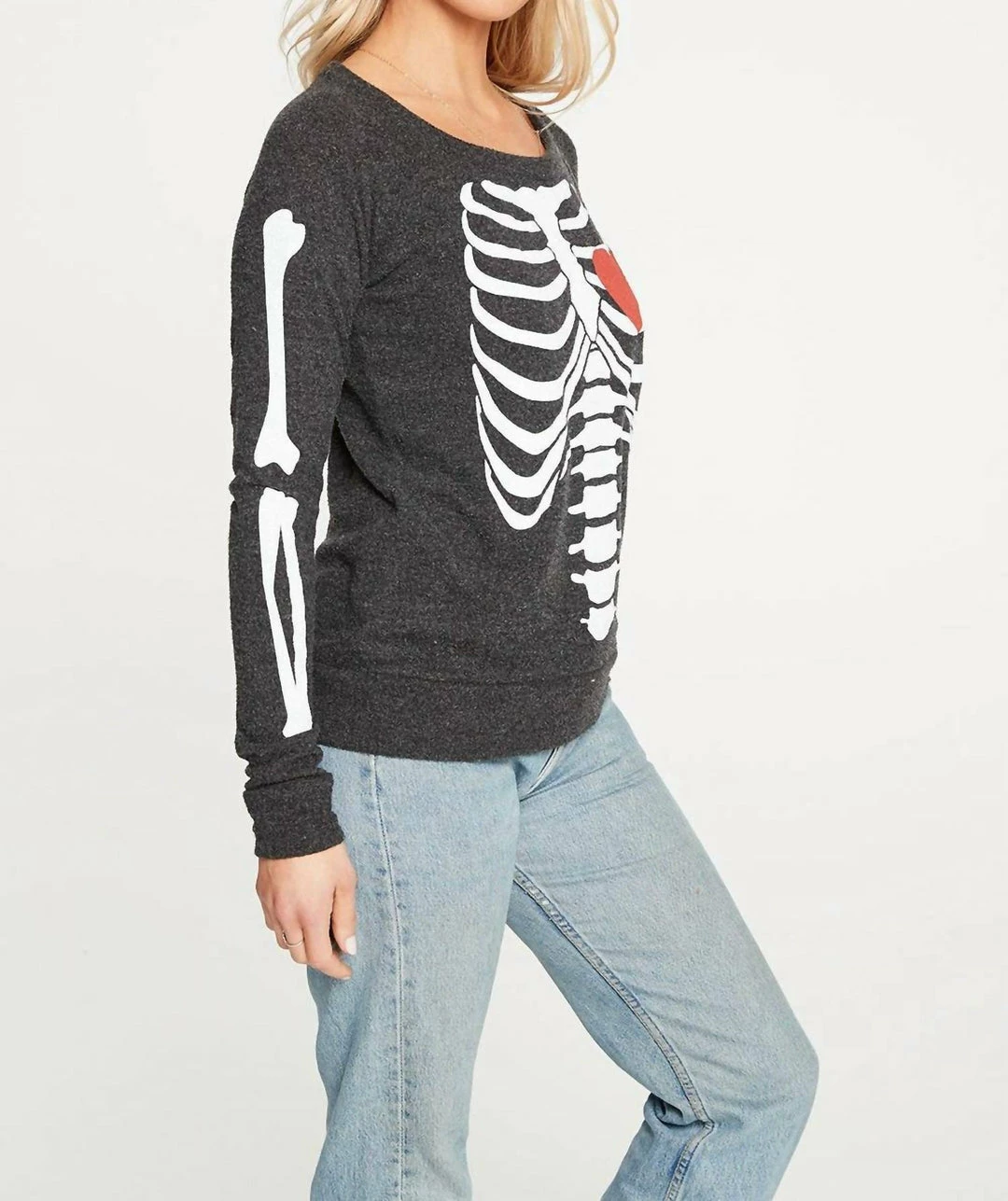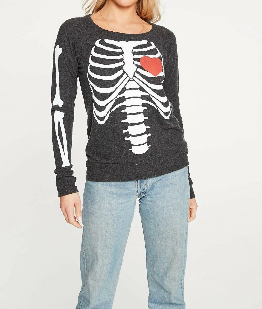 Now you can wear your heart on your tee for everyone to see with this skeleton print pullover, perfect for Halloween and beyond.Cozy knitStyle with leggings and bootsLove Knit Long Sleeve PulloverModel is 5รขโฌโข8รขโฌย and wearing size small