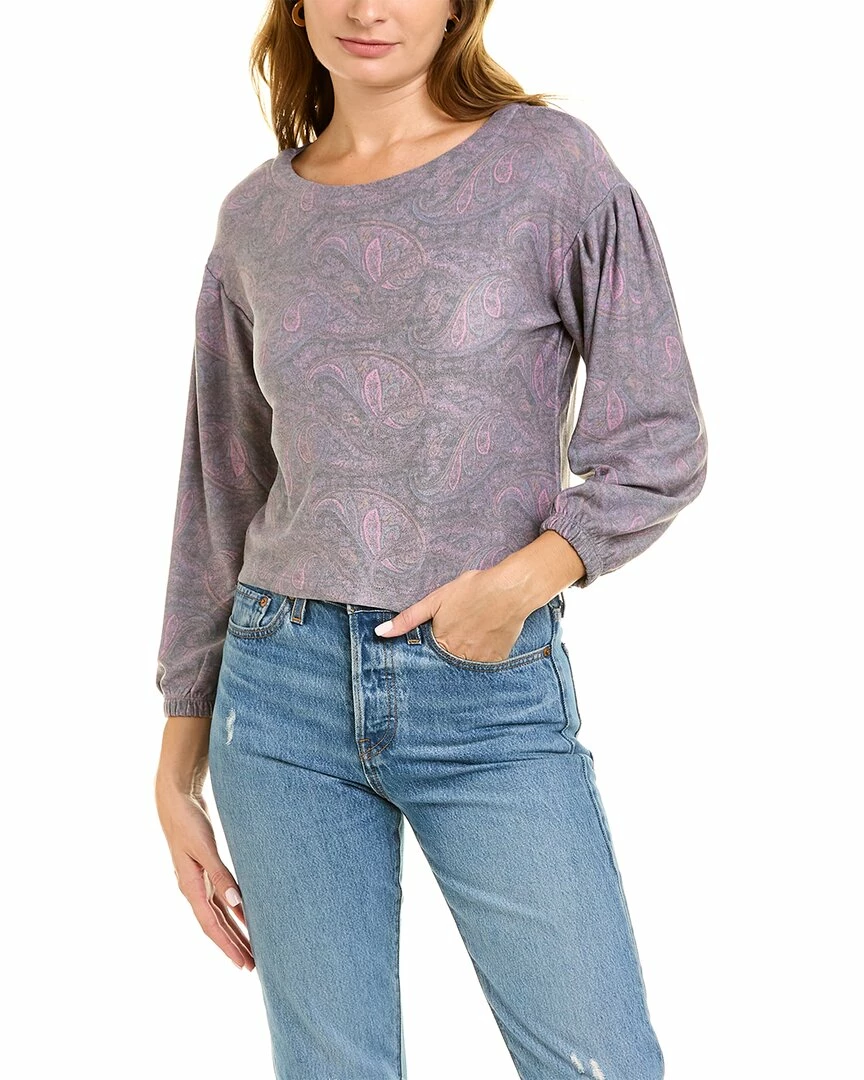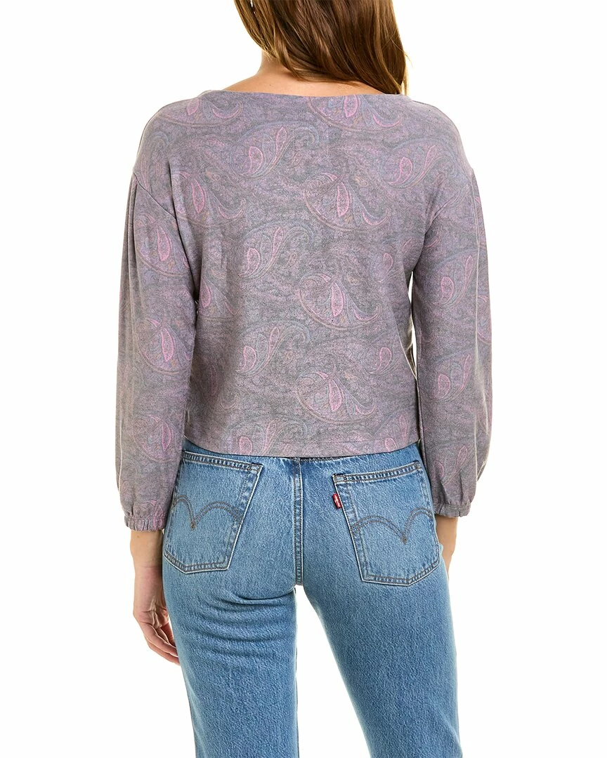 - Cozy Cropped Top In Midnight Paisley With Blouson Sleeves