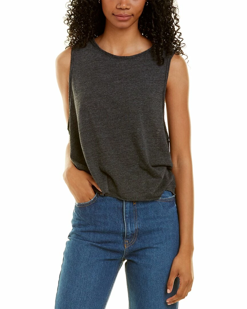 - Dropped Armhole Tank In Black With Raw Edge Trim And Low Arm Holes