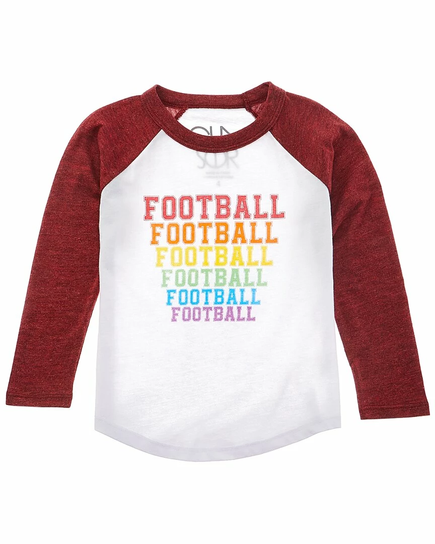 - Football T-Shirt In White And Cardinal With Graphic Front And 3/4-Length Raglan Sleeves
