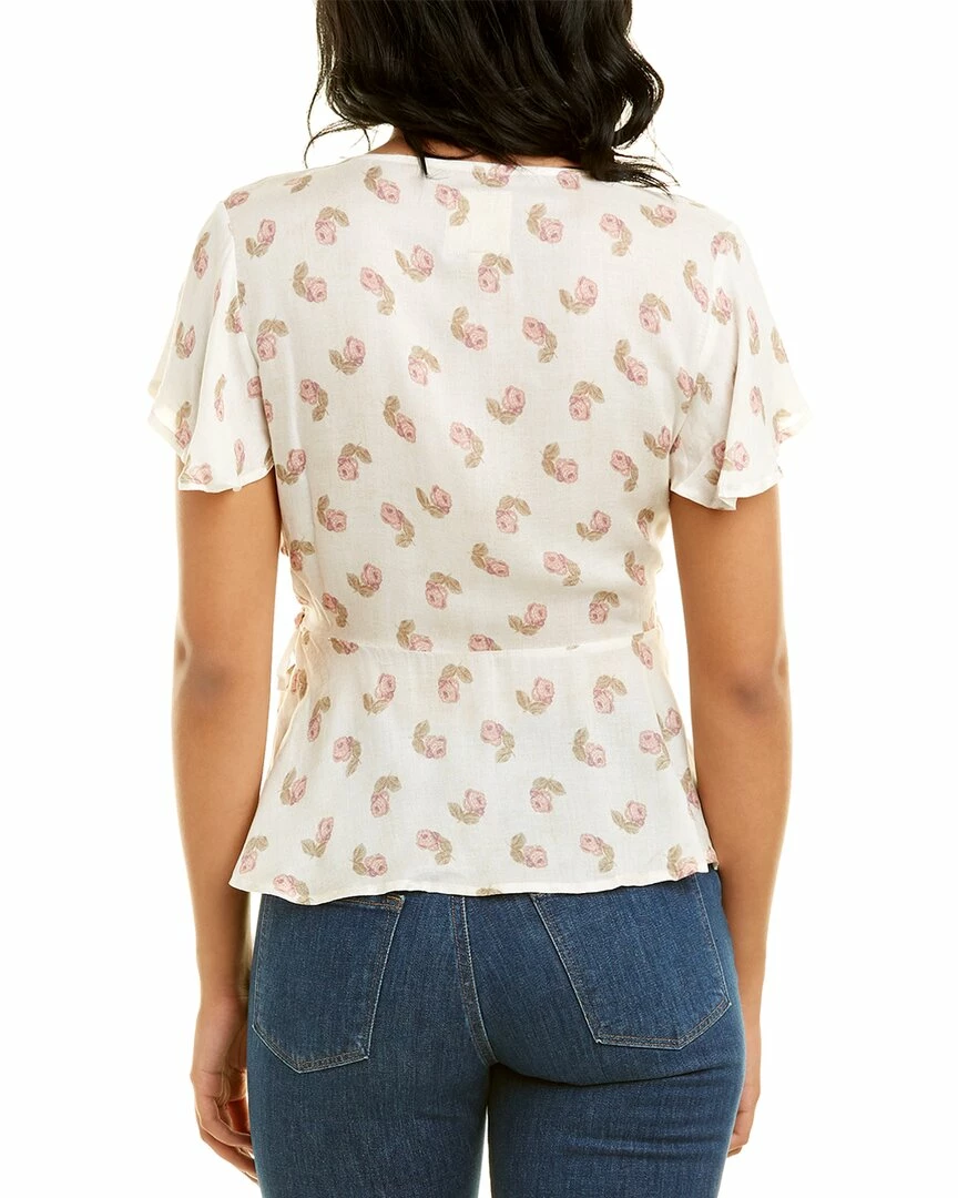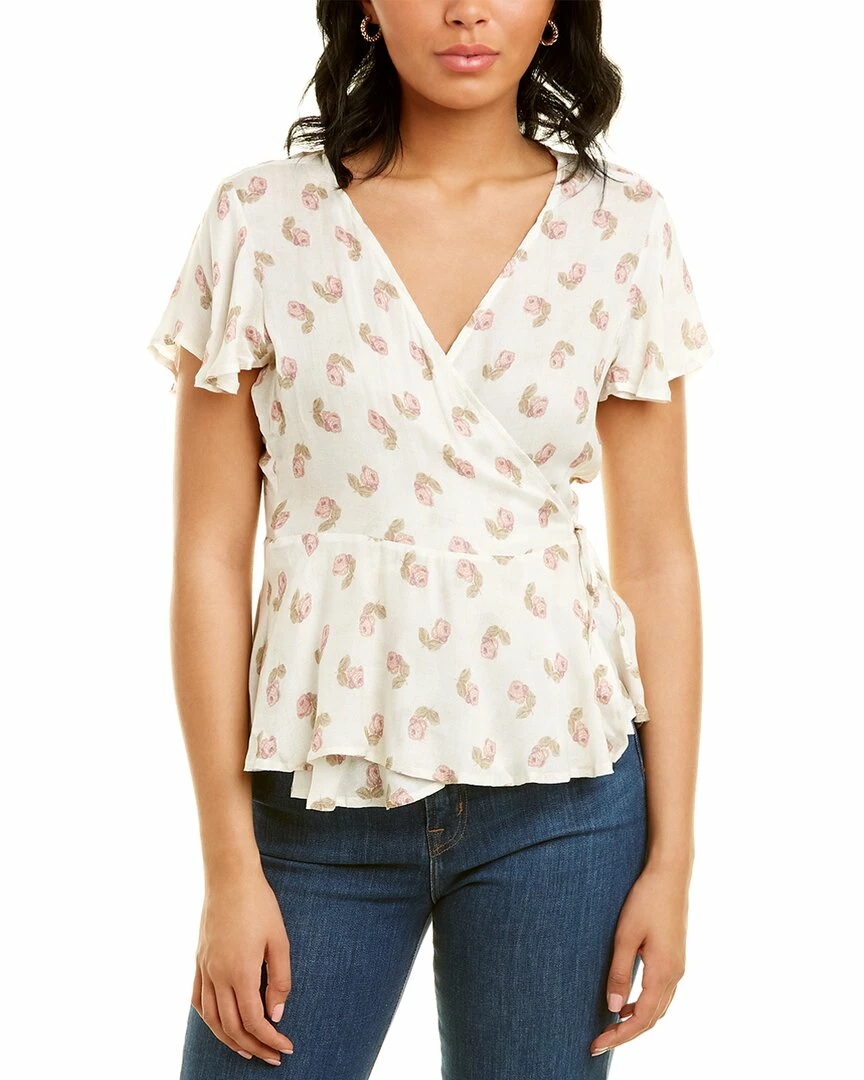 - Heirloom Gauze Wrap Top In Cream Vintage Floral With Flutter Sleeves And Peplum Hem