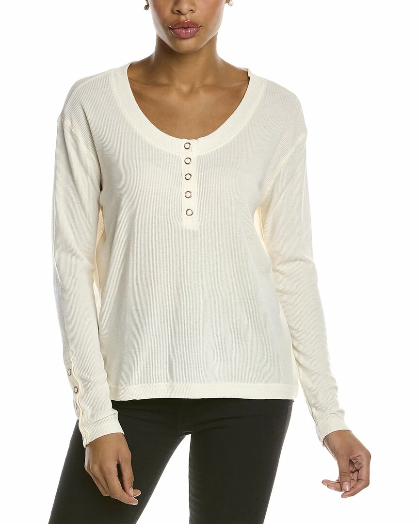 - Heritage Waffle Henley In Eggnog With Waffle Knit, Dropped-Shoulder Sleeves And Snap Accents
