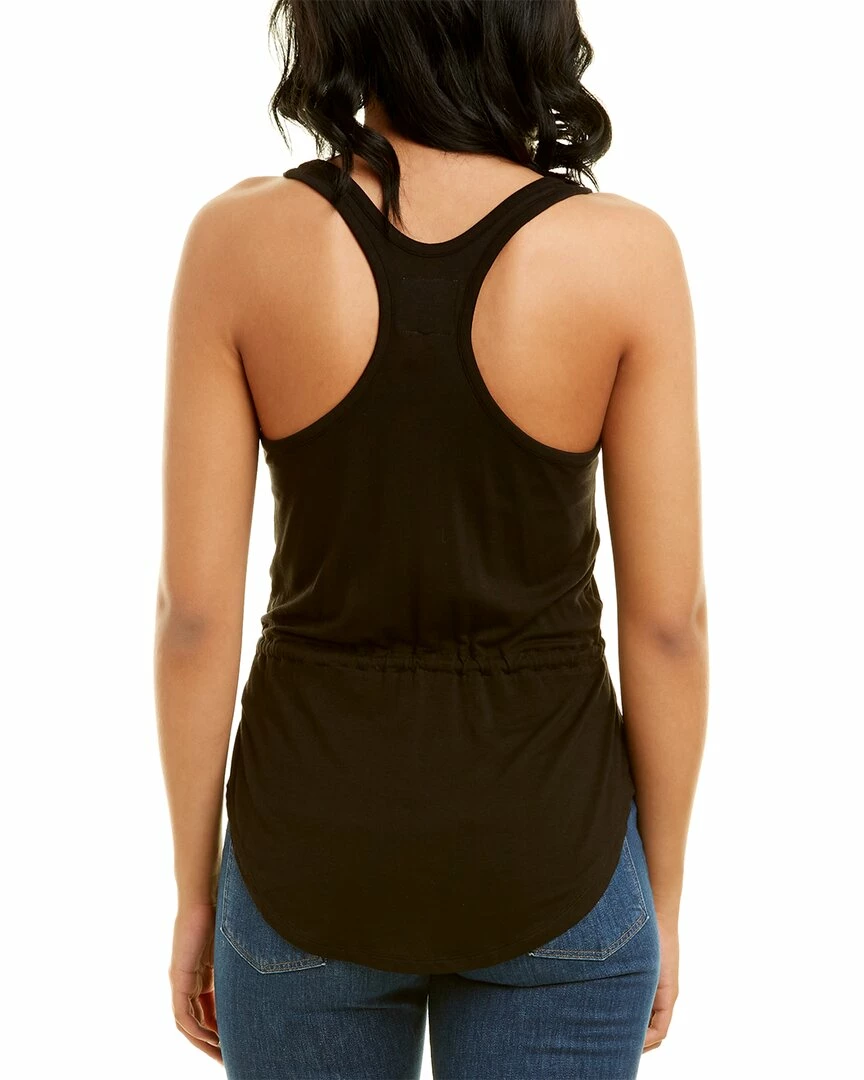 - High-Low Racerback Tank In True Black With V-Neck, Racerback, And Drawstring Peplum Waist