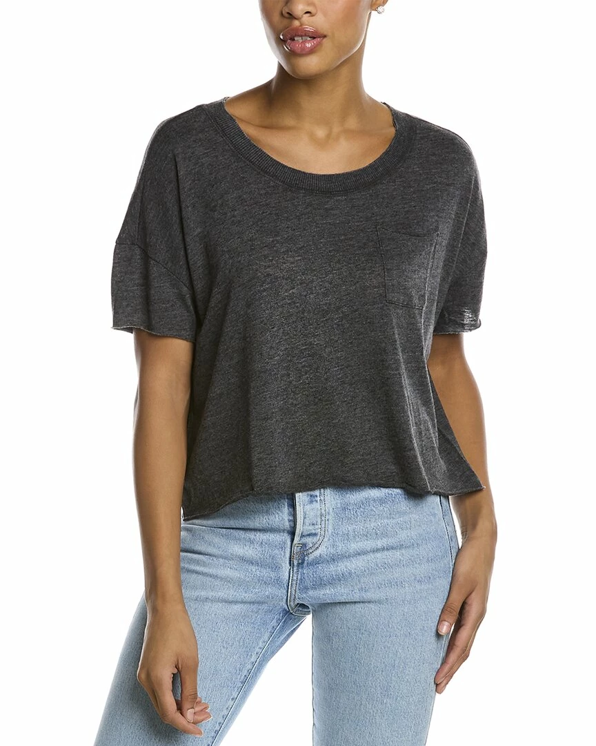 - Jersey Boxy Cropped T-Shirt In Black With Chest Pocket, Raw Edge Trim And Cropped Boxy Hem