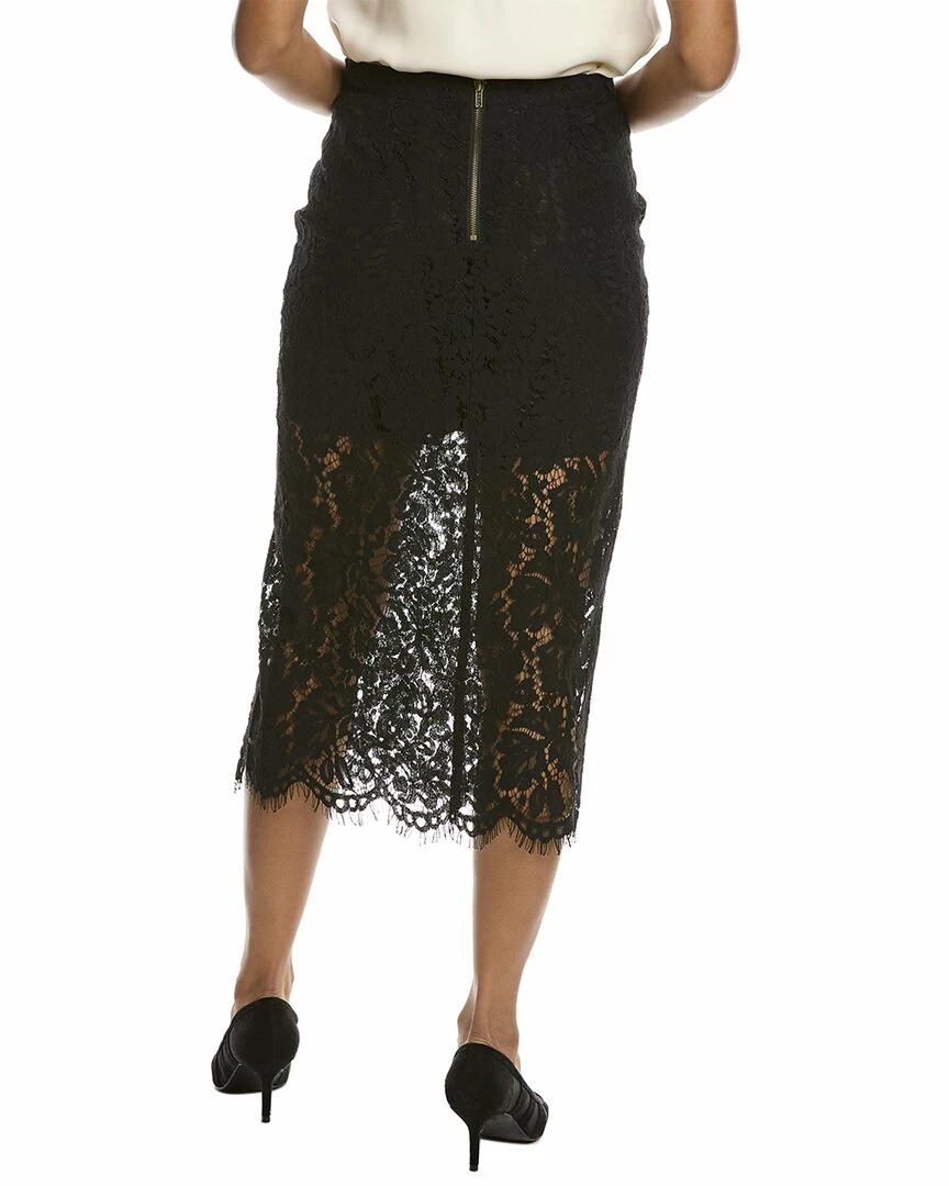 - Lace Straight Midi Skirt In True Black With Lace Overlay And Mini Skirt Lining