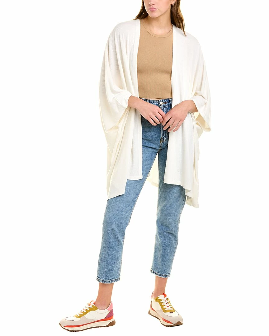 - Love Rib Open Front Top In Bone White With Ribbed Fabric And Kimono Sleeves