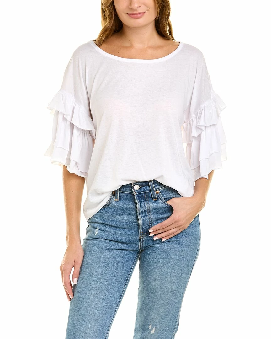- Oversized Shirt In White With Boatneck And Tiered Ruffle Dropped-Shoulder Sleeves