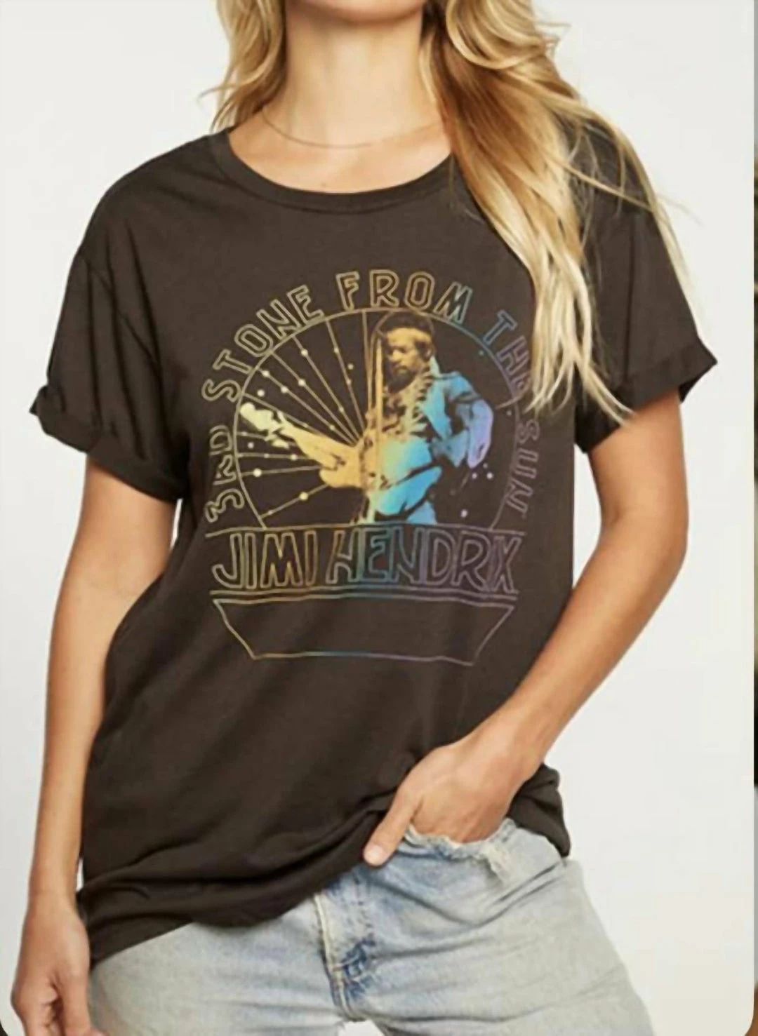 Light black short rolled sleeve Jimi Hendrix T-shirt -3rd stone from the sun