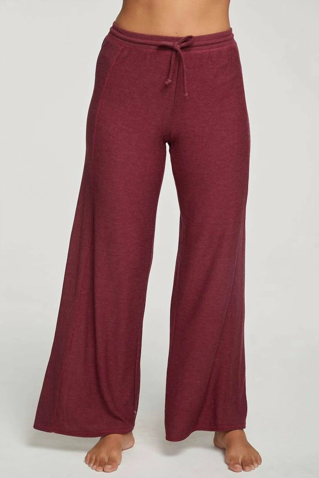 Tis The Season To Lounge. These Cozy Knit Wide Leg Bottoms Feature Side Panel Detail And A Little Stretch. Wear With A Solid-Colored Crop, And Your Casual Aesthetic Is Set. Burgundy Is The Color Of The Time, So Prepare For Plenty Of Wear.
