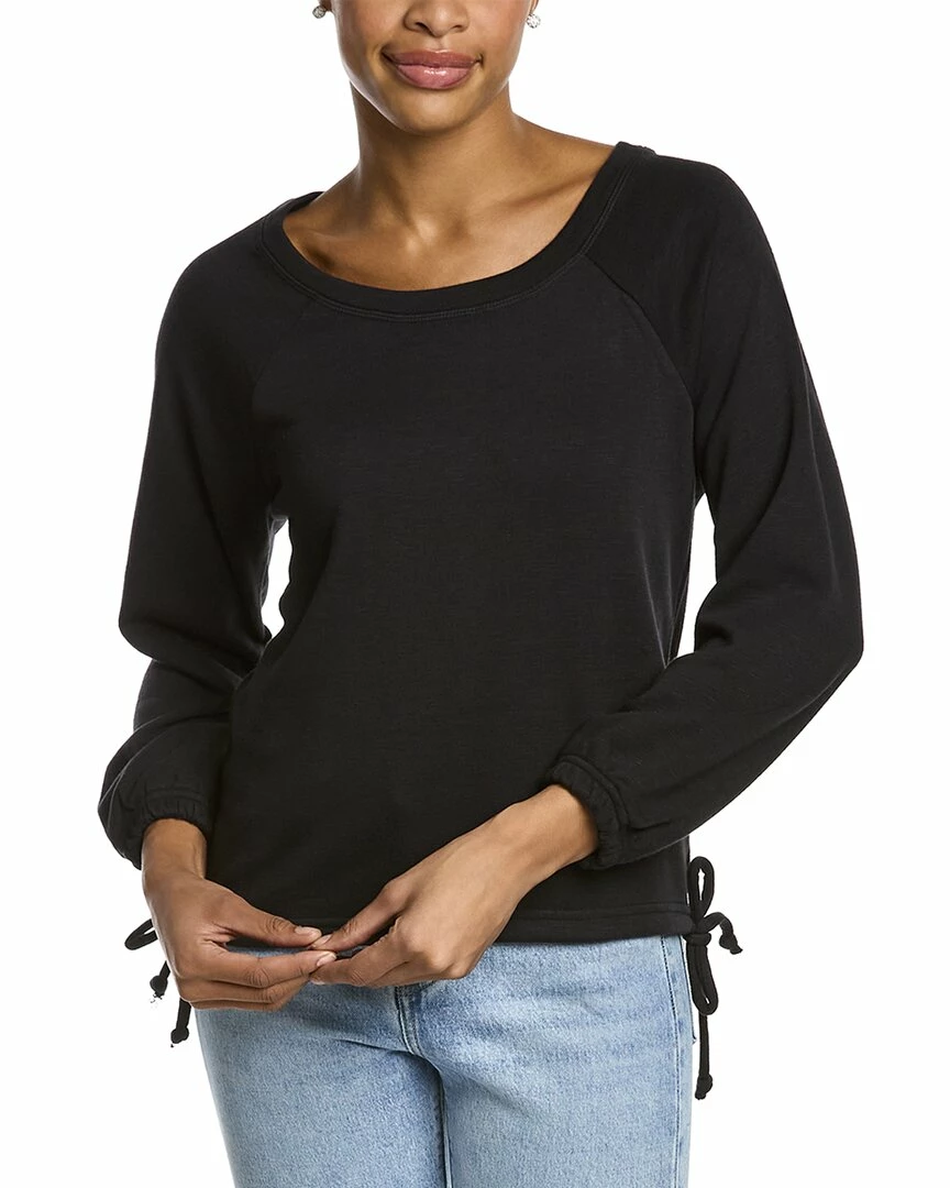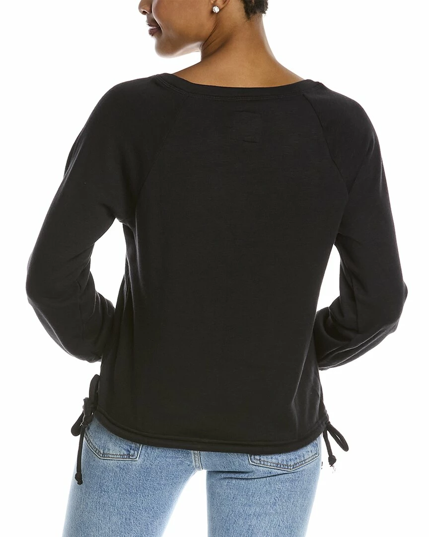 - Slub French Terry Blouson Pullover In True Black With Blouson Raglan Sleeves And Drawstring Hem With Self-Tie Sides