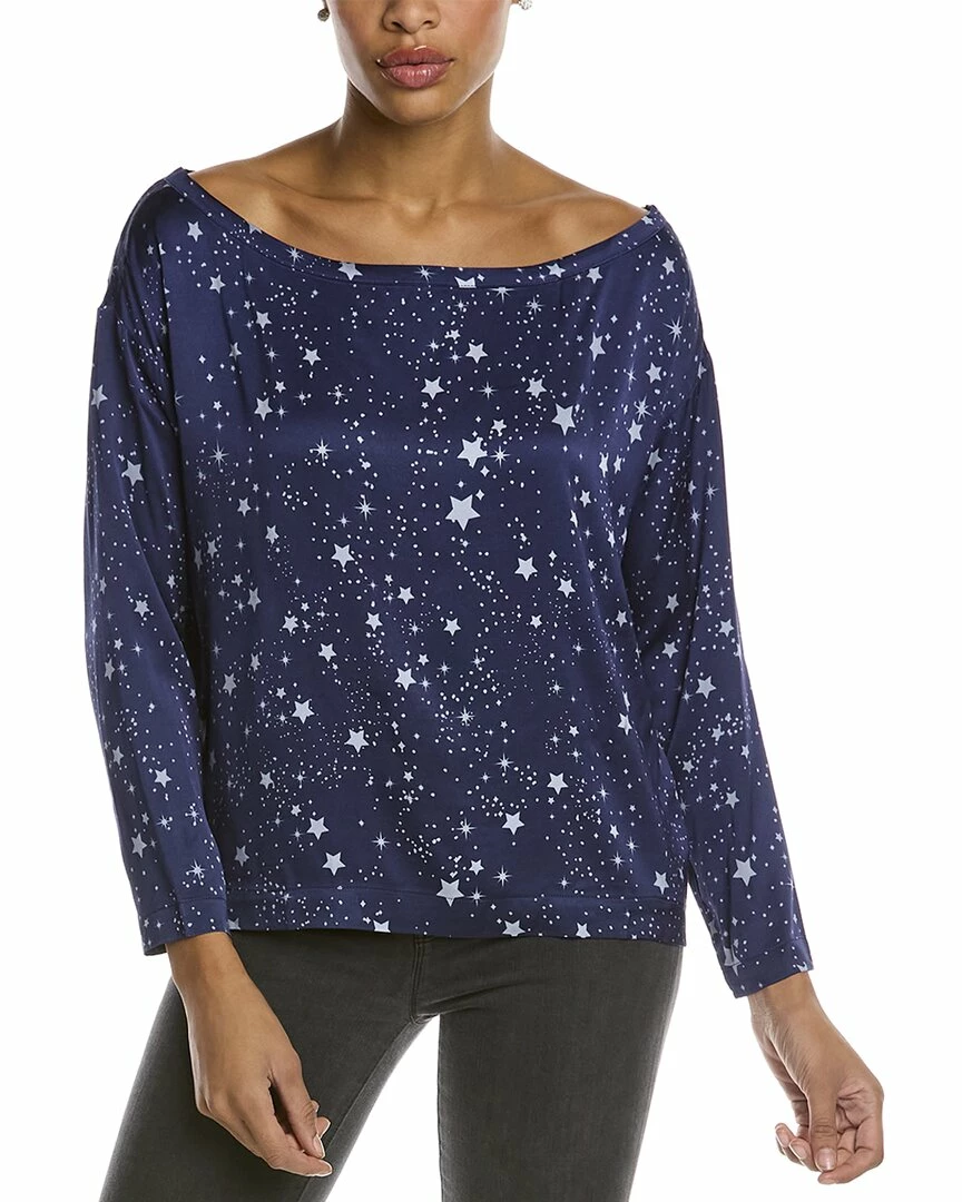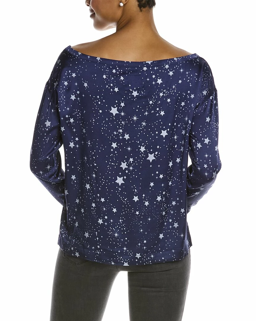 - Stretch Silky Basics Off-Shoulder Top In Star With Printed Satin Fabric And Off-The-Shoulder Neckline