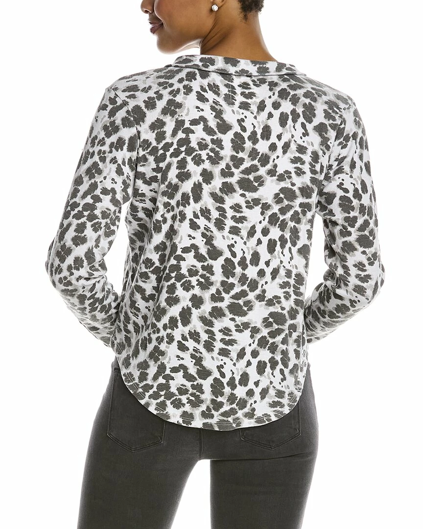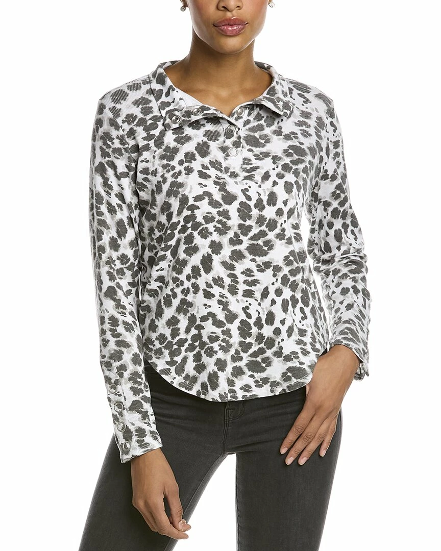 - Vintage Rib Snap Detail Pullover In Snow Leopard With Ribbed Fabric, Mock Neck And Snap Accents