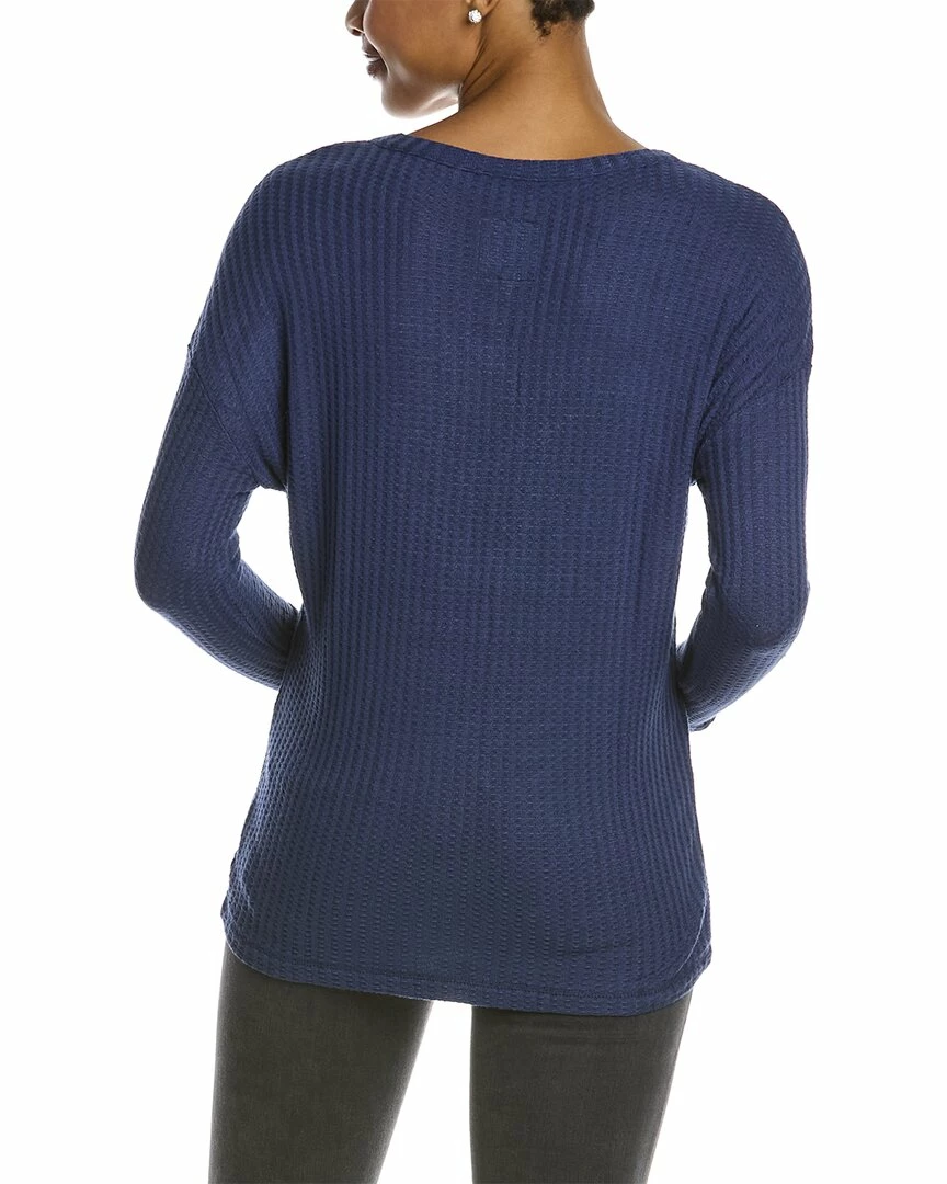 - Vintage Thermal Split Neck Top In Navy With Thermal Knit And Split Neckline With Raw Edge Trim